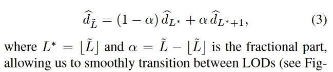 论文中特别强调了可以实现连续LoD,但是这个连续LoD是算相邻的两个整数LoD的加权平均来的: