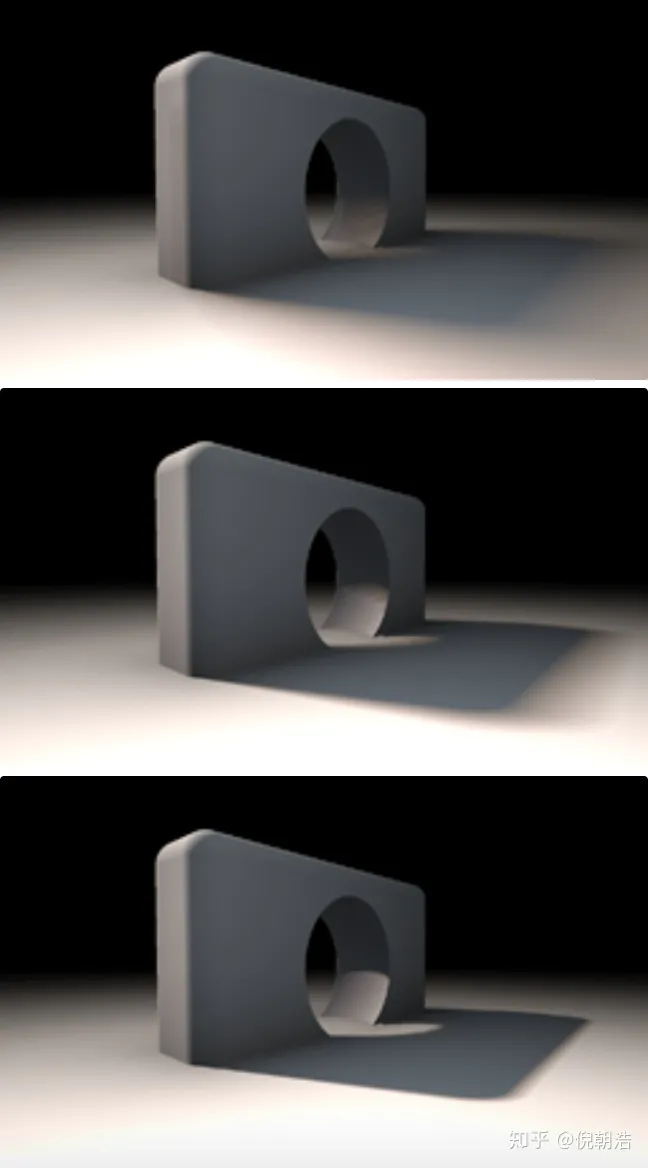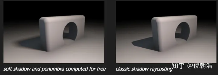 上面代码当然work,但是只会生成准确的硬阴影,缺乏真实感(如图右边)。